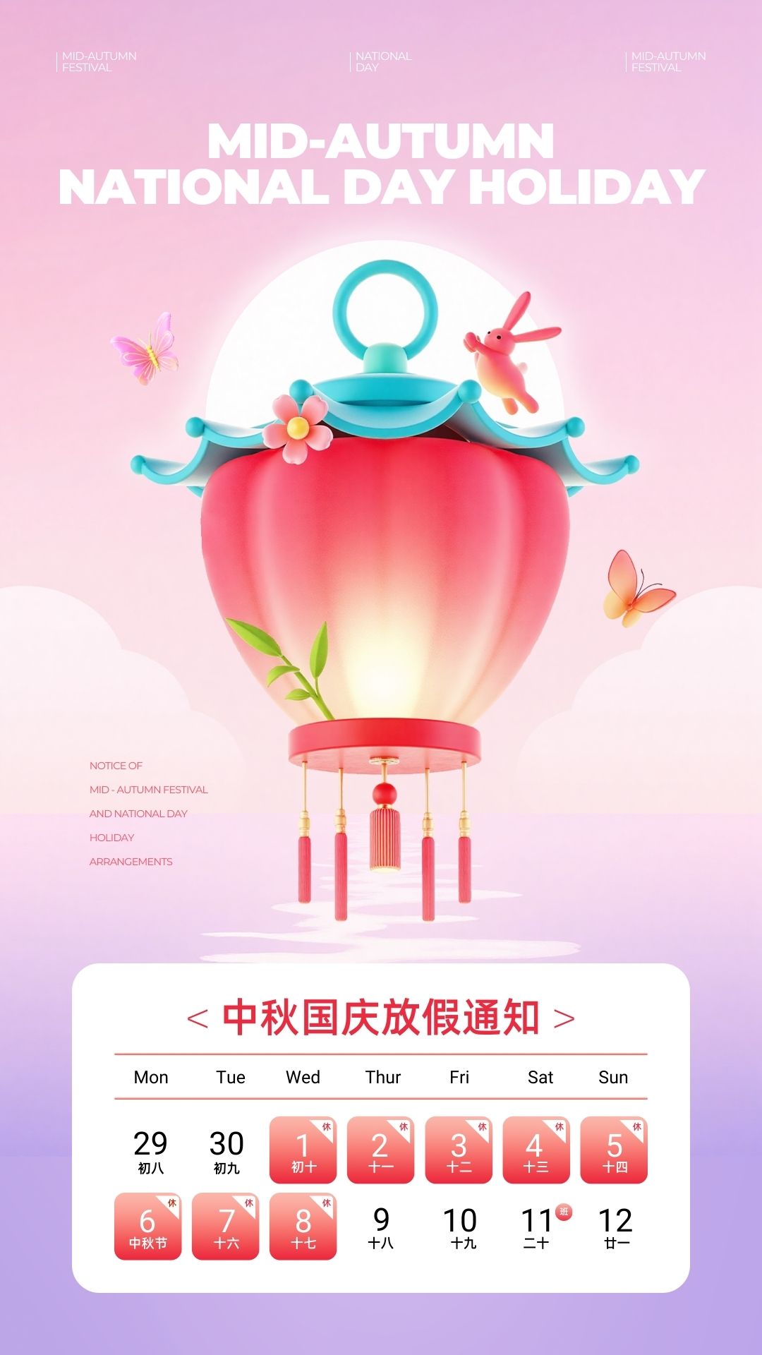 Мы отмечаем ежегодный двойной праздник Праздник середины осени и Национальный день! Чуньсинь выражает вам наши самые искренние пожелания и благодарность.
